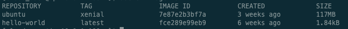 Now let’s check docker images we have with either docker image ls or docker images. There are no images yet, so let’s pull some example images to our machine with docker pull hello-world. When you pull an image like this without specifying a tag, it will by default using the latest tag version of the image. let’s also install an ubuntu images with xenial tag as well for later examples: docker pull ubuntu:xenial